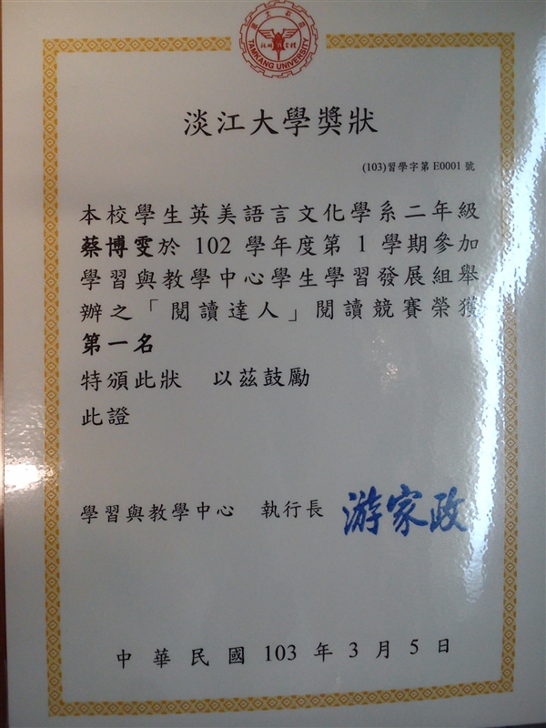 當初在淡江首頁的活動報名系統上看到閱讀達人的消息 當下非常開心