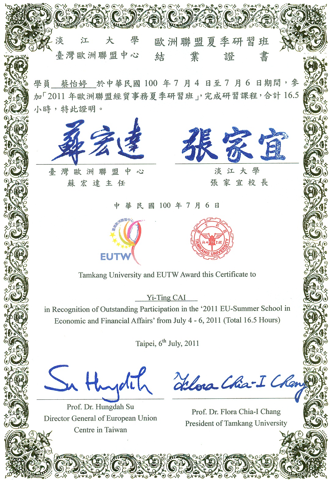 2011/07/04-2011/07/06 歐洲聯盟夏季研習班 淡江大學/台灣歐洲聯盟中心