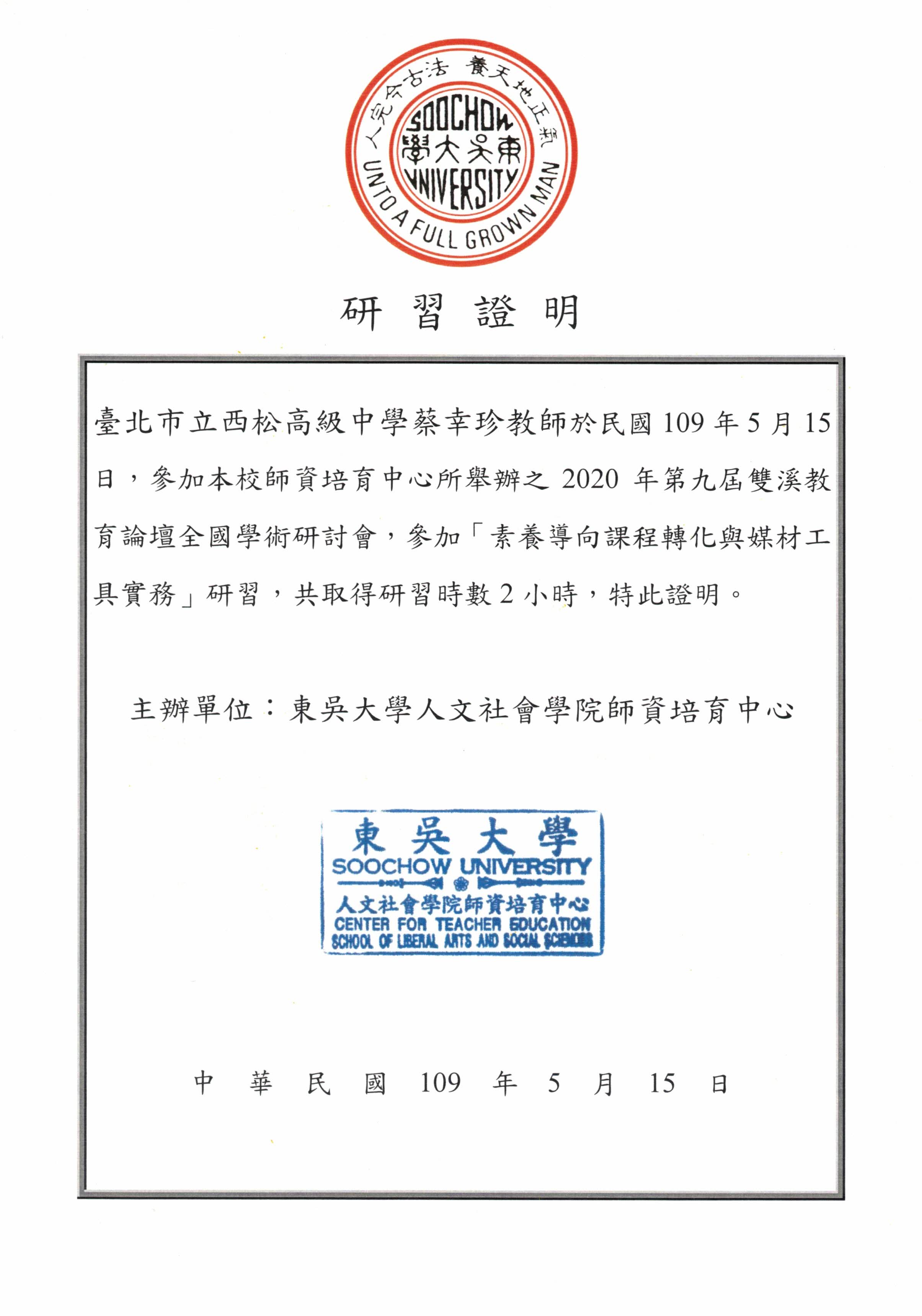 2020.05.15 2020年第九屆雙溪教育論壇研討會 東吳大學