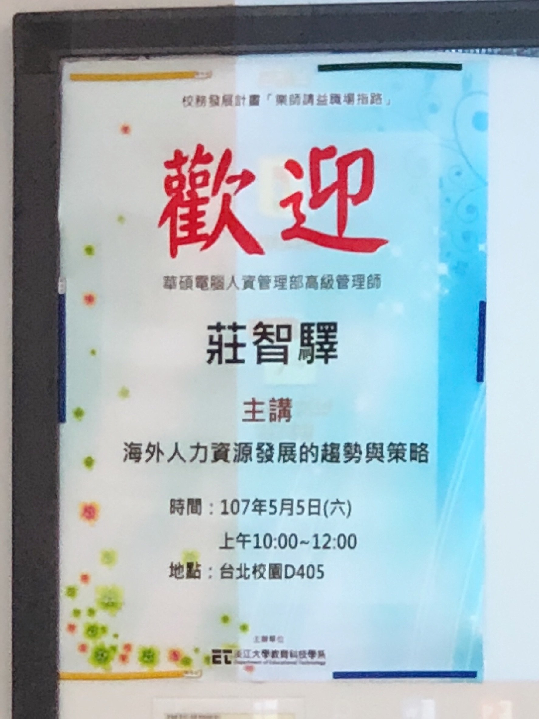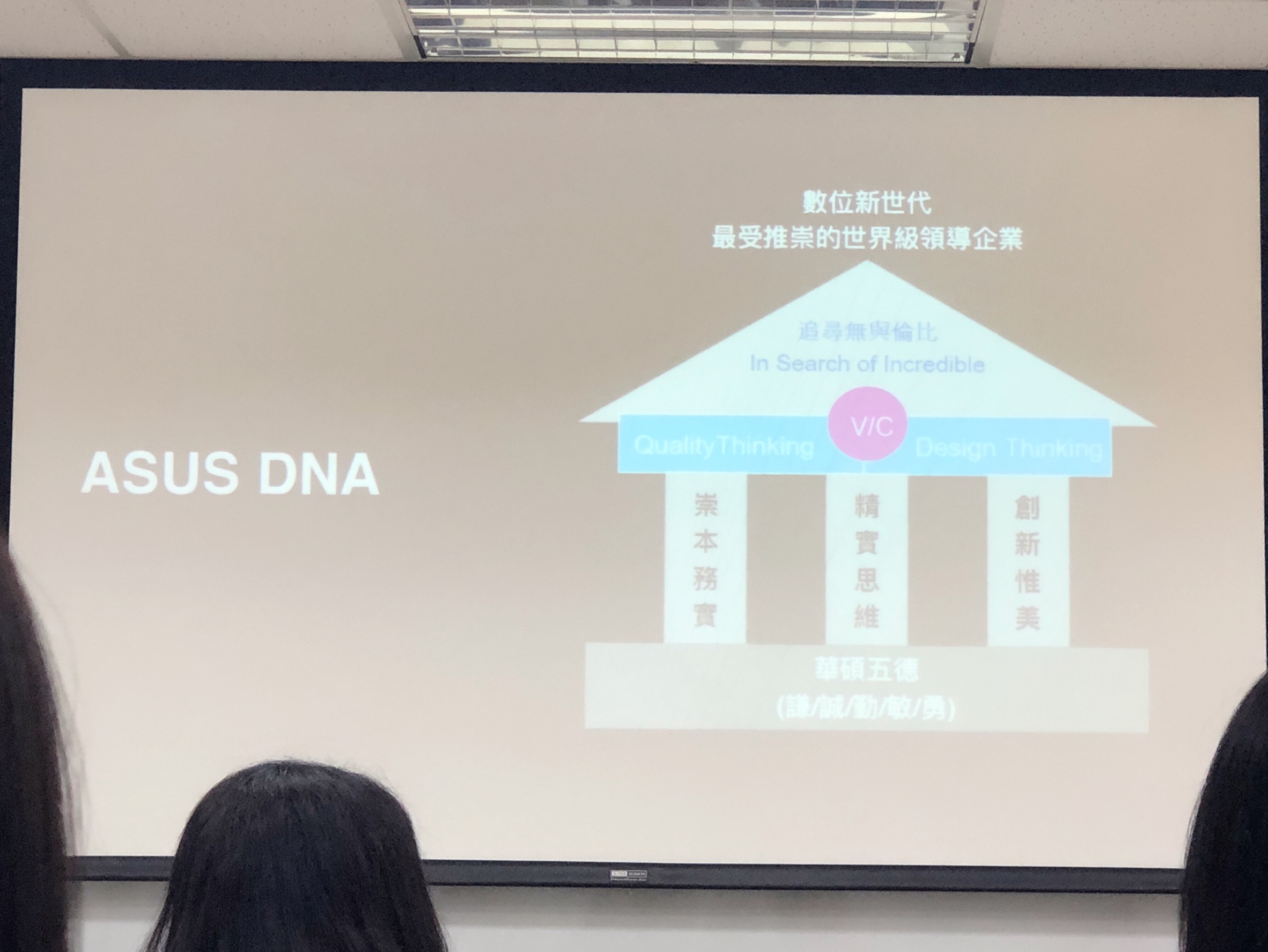 - 聽已畢業的學長在華碩任職HR的工作經驗與專業的分享很棒,能在理論之外了解職場實務現狀、不會脫節。