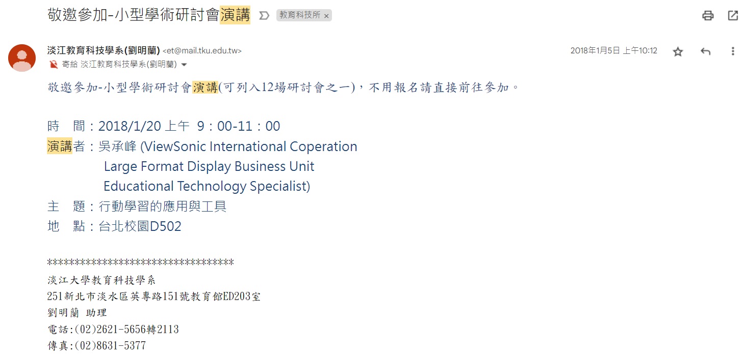 2018.01.20 小型學術研討會演講 淡江大學教育科技學系