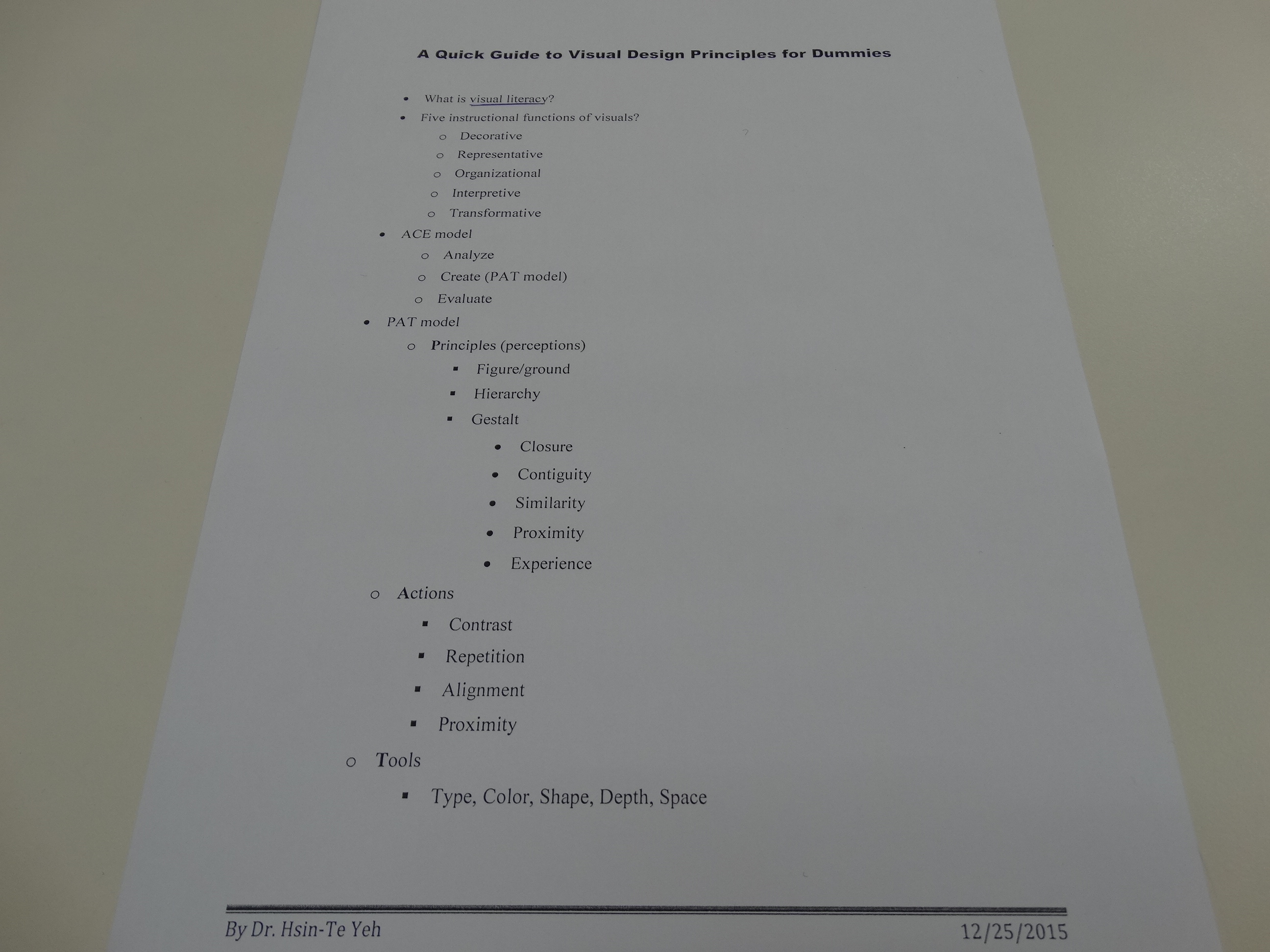 - A Quick Guide to Visual Design Principles for Dummies[Hsin-Te Yeh(Associate Professor, Educational Technology, Department of Teacher Education, Metropolitan State University of Denver, USA)]