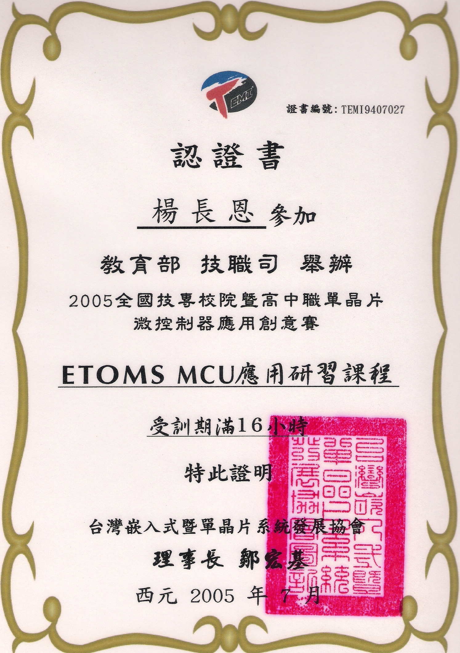 2005年7月 2005全國專校院暨高中職單晶片微控制器應用創意賽 教育部技職司