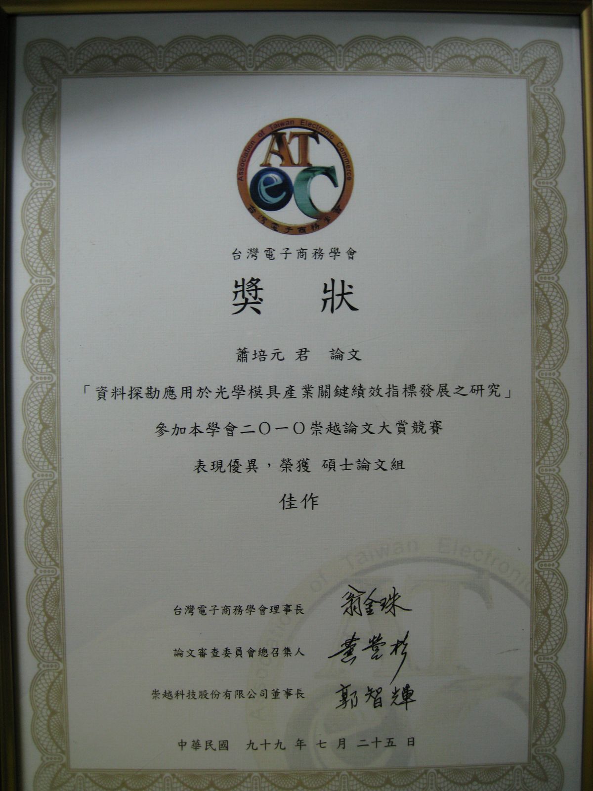 99.07.31 台灣電子商務學會 全國碩博士論文競賽