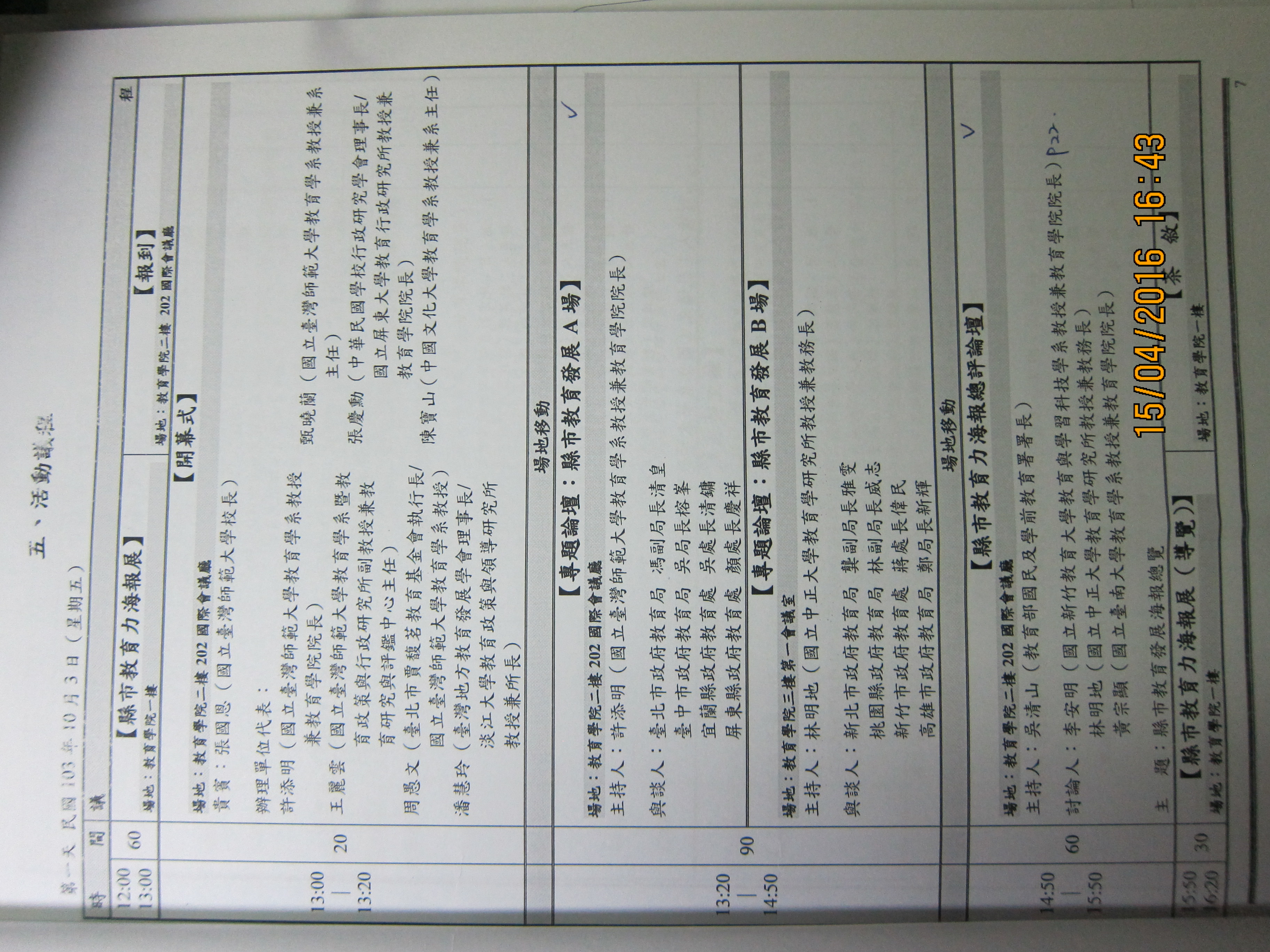 103年10月3至4日 縣市教育力與教育發展學術研討會 國立臺灣師範大學教育政策與行政研究所